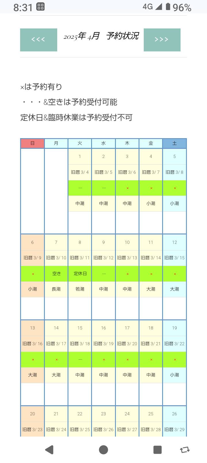明日7(月)明々後日9(水)予約お待ちしてます。 2025 4/06 新着情報 2025年4月6日 明日と明々後日多分天気良さそうなので予約お待ちしてます。 共有: Facebook で共有するにはクリックしてください (新しいウィンドウで開きます) Facebook クリックして X で共有 (新しいウィンドウで開きます) X いいね:いいね 読み込み中… 関連 新着情報 よかったらシェアしてね! URLをコピーしました! URLをコピーしました! 今日はメバルもガシラも良型揃いでした! 新しい仲間と楽しまれてました! この記事を書いた人 admin 関連記事 タチウオだけでした! 2025年11月2日 S以外色々釣れて楽しめました! 2025年11月1日 タチウオ以外厳しかったです! 2025年10月30日 何とかリベンジ成功! 2025年10月29日 伊藤さんが竿頭なれました! 2025年10月25日 1日中ジギングしました! 2025年10月24日 今日は穏やかな1日でした! 2025年10月20日 リーダーがヘンタイ(笑)間違いヘダイ釣られました! 2025年10月18日