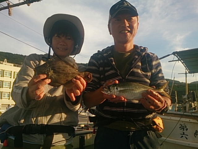 今日は、お客さんのたってからの要望で当船では初めての1日通しで出船しました! 秋晴れの良い天気で良かったです。 9月22日(月) 曇り 大潮 波なし 海水温25℃ 釣り人 武田御夫婦様 釣果 タチウオ6匹(75センチ~100センチ)/カワハギ匹・23センチ/マアジ9匹(21センチ~30センチ)/チャリコ6匹(20センチ~24センチ)/キス9匹(15センチ~22センチ)/ガシラ1匹・20センチ/トラギス1匹・15センチ/イシモチ2匹(23センチ・25センチ) 仕掛け 餌 アンチョビミサイル 仕掛け ヒトツテンヤ 餌 エビ 仕掛け 胴突き3本針 餌 …
