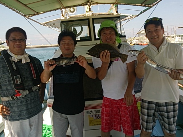 今日もマゼ(南より)の風強い1日でした(T_T) 前回、エナジードリンク飲んで船酔いしましたが、今回は飲まなかったので頑張って釣ってくれました(笑) 8月19日(火) 晴れ 小潮 マゼ(南より)の風強し波高い 海水温25℃ 釣り人 泉谷様、石川様、片岡様、板橋様 釣果 ヒラメ1匹・42センチ/メバル1匹・25センチ/タチウオ12匹(66センチ〜92センチ)/マアジ8匹(22センチ〜35センチ)/チャリコ3匹(20センチ〜22センチ)/ガシラ4匹(13センチ〜20センチ) 仕掛け 胴付き3本針 餌 青イソメ 仕掛け タチウオテンヤ 餌 …