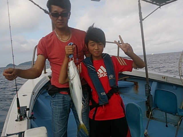 今日は、朝からマゼ(南より)の風吹き涼しい1日でした(^-^) 昨日、今日とノマセ主の大物狙いしました(^-^) 2日続けて釣れてくれて良かったです(^_^)v 8月14日晴れ 中潮 波なし 海水温25℃ 釣り人 川田親子様 釣果 ハマチ1匹・56センチ[ノマセ] 仕掛け ノマセ仕掛け 餌 活きアジ 仕掛け ヒトツテンヤ 餌 …