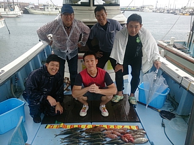 今日は朝からどしゃ降りの雨降り肌寒い1日でした。 マアジ主に退屈せんていどに釣れてくれました(^^)/ 8月2日(土) 1日中どしゃ降り 小潮 波なし 海水温25℃ 釣り人 山室様、児玉様、豊国様、池田様、櫃本様 釣果 アコウ1匹・36センチ/マアジ17匹(22センチ〜33センチ)/チャリコ6匹(19センチ〜20センチ)/ガシラ6匹(14センチ〜17センチ)/イシモチ1匹・30センチ/キス1匹・18センチ/トラギス13匹(14センチ〜17センチ) 仕掛け 胴付き3本針 餌 …