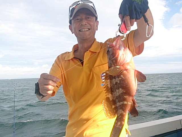 今日は、朝からマゼ(南より)の風強く大時化の1日でした! そんな中、ノマセ、タイカブラと大物釣りやり、タイカブラ残念でしたが、ノマセでアコウ釣ることが出来ました! 8月5日(火)晴れ 長潮 波なし 海水温25℃ 釣り人 山根様、吉田様 釣果 アコウ1匹・35センチ 仕掛け ノマセ仕掛け 餌 …