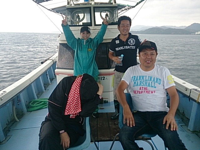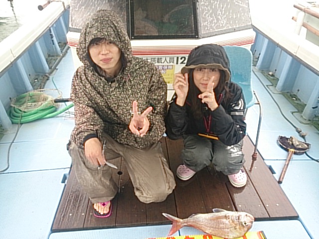 今日は、昨日みたいに大時化じゃありませんでしたが、スコールひどく、しかも朝からエネルギーチャージするつもりで買って来られたエ〇ジ〇ドリンク飲まれたお客さんはエネルギーチャージどころか、船酔いしてしまい体力なくしてしまい釣りになりませんでした( ; ゜Д゜)エ〇ジ〇ドリンク逆効果でした( ; ゜Д゜)! 二人完全グロッキー状態になられたので7時止めて帰ってきました(T0T) 7月14日(月) どしゃ降り中潮 波なし 海水温22℃ 釣り人 金岡様、泉谷様、山本様、笠原様 釣果 7時までの釣果 マアジ3匹・チャリコ1匹・ガシラ1匹・タチウオ1匹 仕掛け 胴付き3本針 餌 …