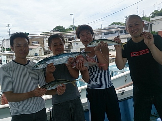 今日は、西よりの風少し吹き波少し高い1日でした。 マアジ主に、退屈せん程度に釣れおかず確保出来たので、後半ノマセしました。 ノマセでサゴシ釣れ満足の行く結果でした。 先週、普段釣れない茨木支部長が釣ったせいで翌日から釣れず、今回も普段釣らない茨木副支部長が釣られたので明日からが心配です(@_@) 7月5日(土)曇り/晴れ 小潮 …
