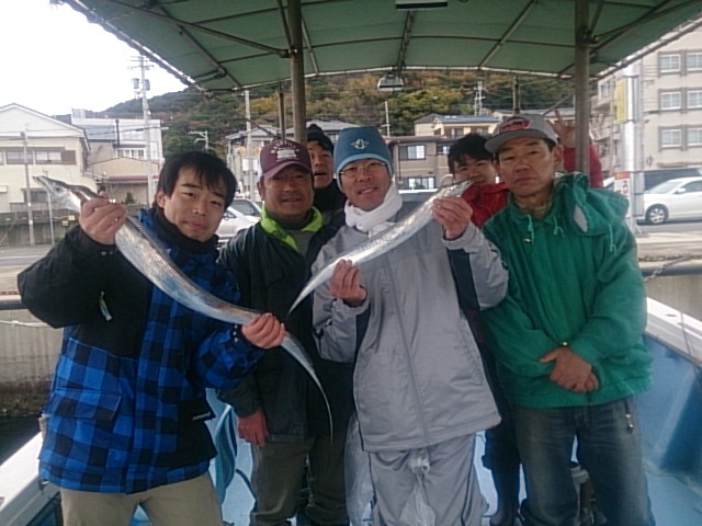 今週寒気の影響で時化続きで全然出れませんでした。 今日も波風ありましたが何とか出ること出来ました。 波でアタリ取りづらく苦戦しましたが、坊主なく皆さん釣れて良かったです。 12月13日(金) 晴れ 若潮 波高い 海水温16℃ 釣り人 山下様、佃様、寺光様、野田様、木暮様、鹿目様 釣果 タチウオ17匹(68?〜107?)【タチウオテンヤ 】 仕掛け タチウオテンヤ 餌 …