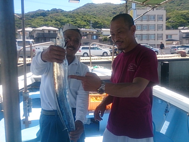 今日も沖マゼ吹いてくれて涼しい1日でした。 五目でマアジ中心に色々しました。 8月21日(水) 晴れ 大潮 波なし 海水温28℃ 釣り人 古山様、城様 釣果 マアジ11匹(25?〜33?)/ガシラ4匹(14?〜20?)/キス1匹・23?/エソ1匹・40?/タチウオ1匹・95?(ノマセ) 仕掛け 胴付き3本針 餌 青イソメ 仕掛け ノマセ仕掛け 餌 活きアジ 仕掛け、餌 ジグ 古山さん、マアジいっぱい釣れて良かったですね(^-^)v 城さんも、遠い京都来ていただき、ありがとうございました。 …