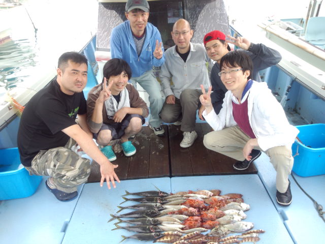 今日も天気最高に良い1日でした(^_^) 数的には、物足りなかったですが、良型のマダイ釣れてくれて、良い土産出来て良かったです(^_^) 5月26日(日) 晴れ 大潮 波なし 釣り人 重村様、石川様 釣果 マダイ1匹・48㎝/マアジ1匹・30㎝/ガシラ1匹・21㎝/チャリコ1匹・18㎝/キス1匹・21㎝/トラギス1匹・20㎝/ベラ匹・㎝ 仕掛け 胴付き2本針 餌 青イソメ 重村さん、やったね(^^)v やっと本命釣れてくれて良かったです(^_^) 今日は、お弟子さんと一緒で良いところ見せれて良かったですね(^^)v 次回も必ず釣って下さいよ! …