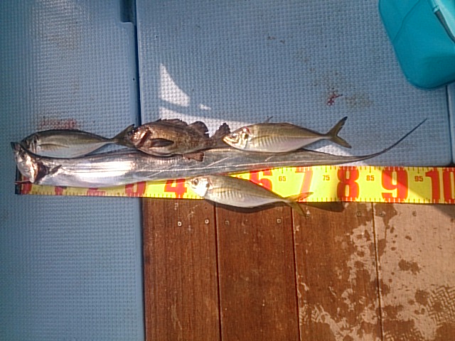 タチウオ食い渋いの分かってるので、マアジで土産作ってからタチウオ釣りしてもらおうと思ってたのに、頼みのマアジも食い渋く厳しい結果に終わりました(T^T)