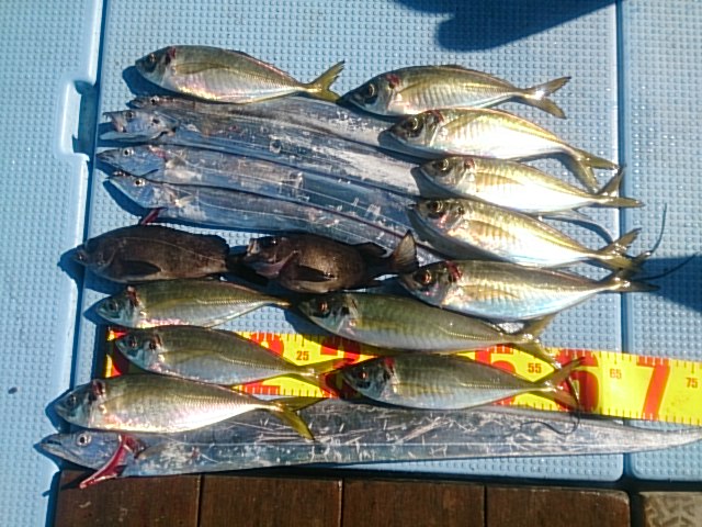 タチウオアタリ小さく数釣れませんでしたが、マアジ昨日より食い立ち釣れて喜んで貰えました。