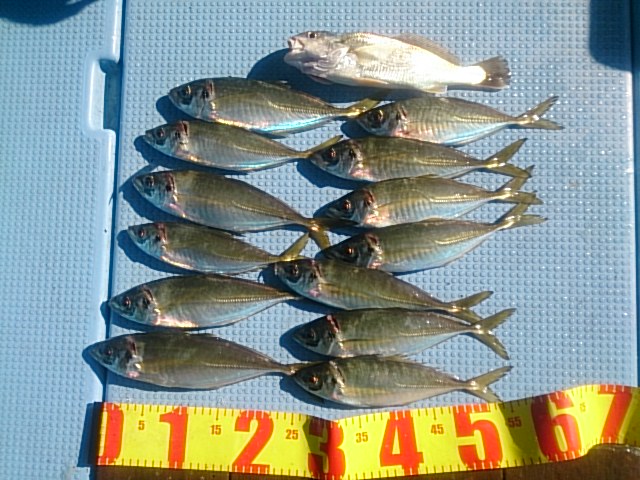 釣果 マアジ13匹(28?〜36?)/イシモチ1匹・32?