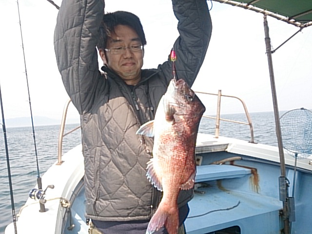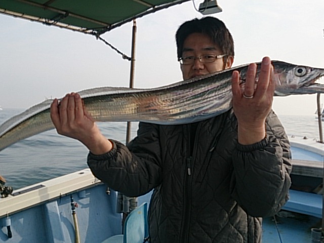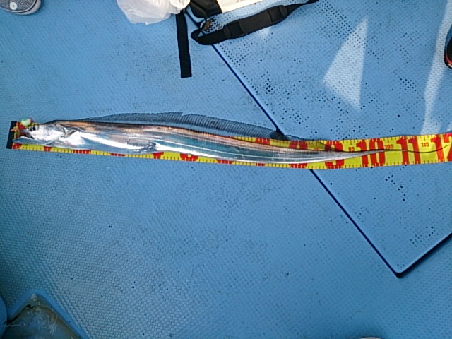 岩内さん、ヒトツテンヤでマダイ47センチ、タイカブラで121センチタチウオ、両方釣られお見事でした(^^)