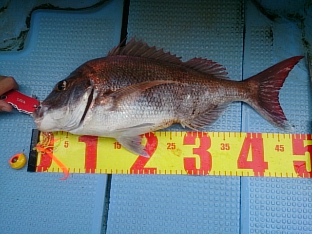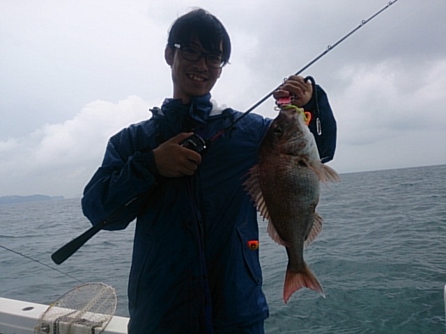 雨風の悪天候の中でも、タイカブラでマダイget しました! 2014年6月22日 今日は、雨風強く悪天候の1日でした。 そんな中、タイカブラでマダイget出来て良かったです。 6月22日(日)雨 長潮 波なし 海水温19℃ 釣り人 馬木様 釣果 マダイ匹(38センチ・〜51センチ)[タイカブラ] 仕掛け 餌 タイカブラ 佑介、51センチ 38センチ、2流し連続で釣れておめでとう(^^) また、釣って下さい! 本日は悪天候の中お疲れ様でした。