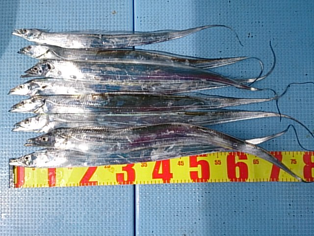 釣果 タチウオ8匹(66センチ〜93センチ)/鰐鯒1匹・34センチ/マアジ2匹(21センチ・22センチ)/ガシラ3匹(18センチ〜23センチ)/キス3匹(18センチ〜26センチ)