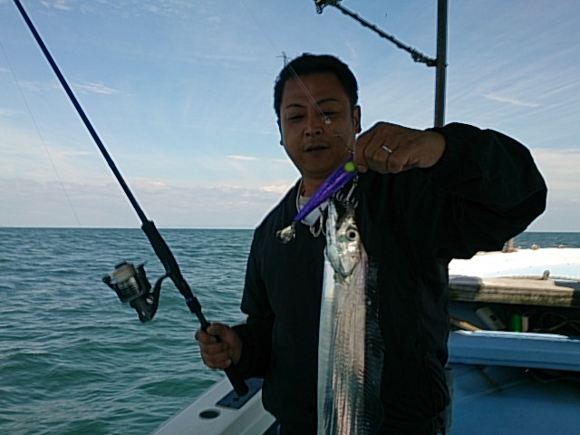 初めてお越しの竹内さん、アンチョビミサイルでタチウオ釣れて良かったですね(^^)