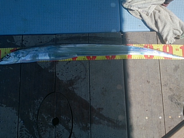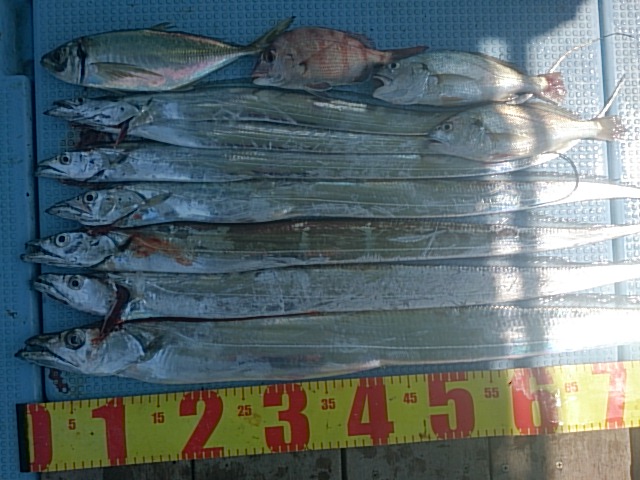 釣果 タチウオ7匹(75センチ~120センチ)/マアジ1匹・30センチ/イシモチ2匹・25センチ/チャリコ1匹・20センチ