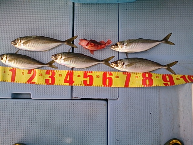 釣果 匹・(センチ・~センチ)/マアジ5匹(34センチ~37センチ)/ガシラ1匹・18センチ