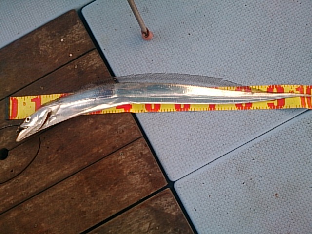 タチウオ、あたり多いですが食い付き悪くなかなか乗りませんでしたが、全員釣れてくれたので良かったです。