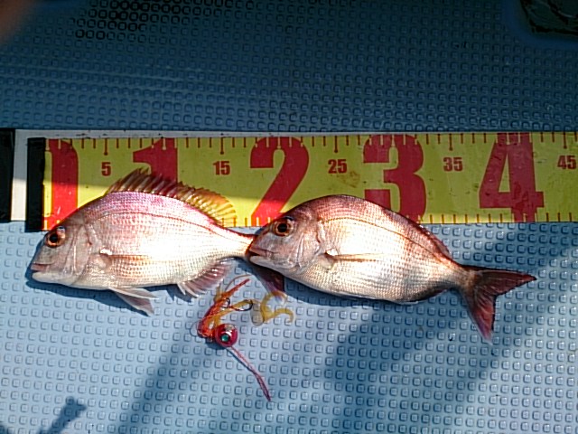 石川さん、マダイじゃありませんでしたが、タイカブラでマアジ釣れ、餌釣り以外でようやく釣れて良かったですね(^^)