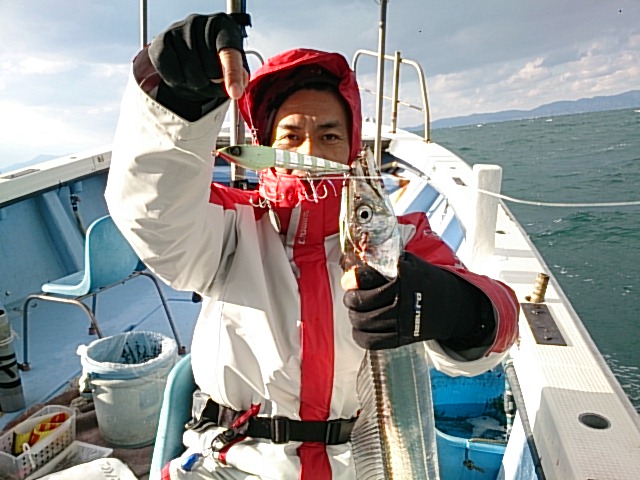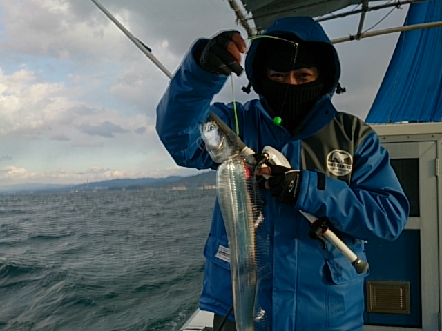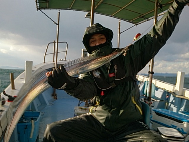 朝からの時化が中々収まらず、しかも昼前から大荒れになりましたが何とか船出すことでき、頑張ってタチウオ釣ってくれました!