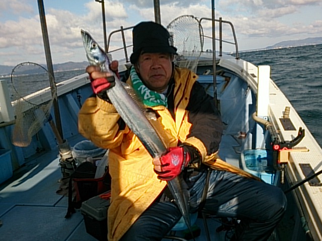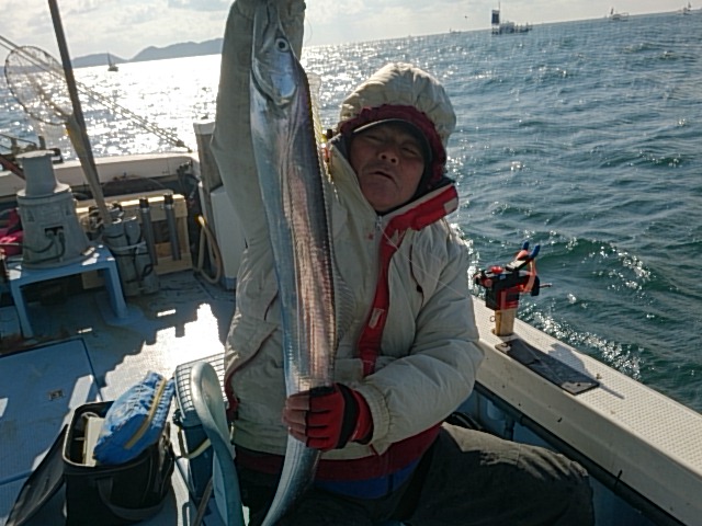 川上さん、長田さん、桐原さん、去年の1月のタチウオは4人でタチウオ1匹という寂しい結果でしたが、今年の1月1発目のタチウオは、皆さん10匹以上持って帰れて良かったですね(^^)