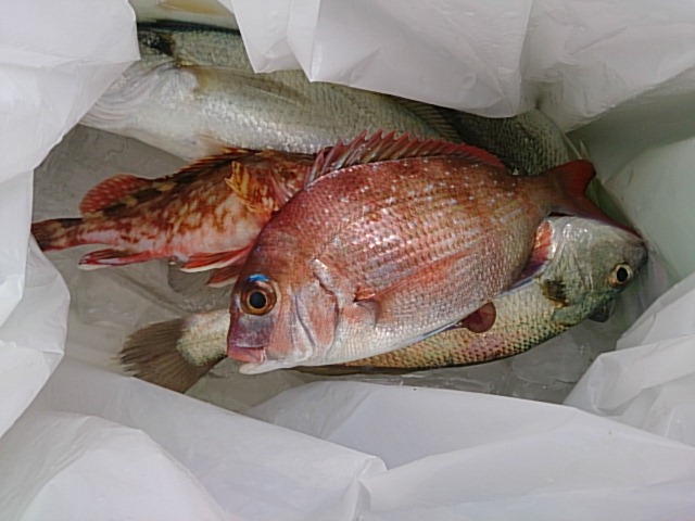 イシモチ+α 2015年5月6日 イシモチでおかずだけ何とか確保しました。 5月6日(水) 晴れ 中潮 波なし海水温17℃ 釣り人 冨田様 釣果 ガシラ1匹/チャリコ1匹/イシモチ6匹 仕掛け 胴付き2本針 餌 青イソメ 冨田さん、手土産出来て良かったですね(^^) また遊びに来て下さいね(^^) 本日はありがとうございました(^^)