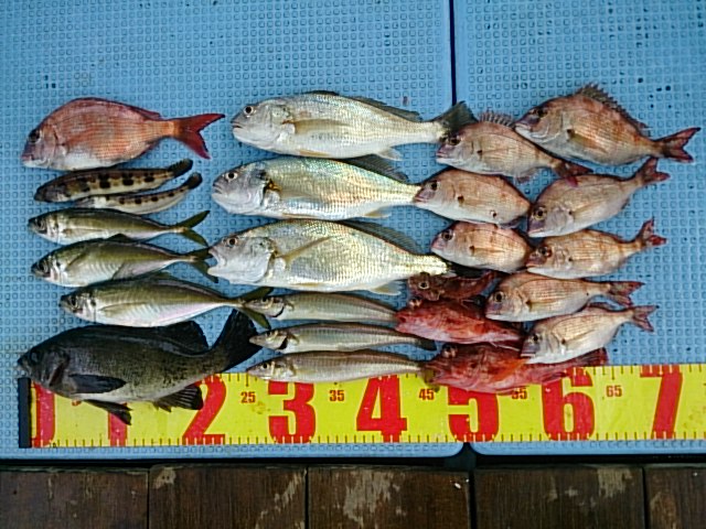 釣果 メバル1匹・28センチ/マアジ3匹(22センチ~25センチ)/ガシラ3匹(15センチ~20センチ)/カスゴ1匹・25センチ/チャリコ8匹(15センチ~21センチ)/キス3匹(センチ~センチ)/イシモチ3匹(28センチ~30センチ)/トラギス2匹(15センチ・20センチ)