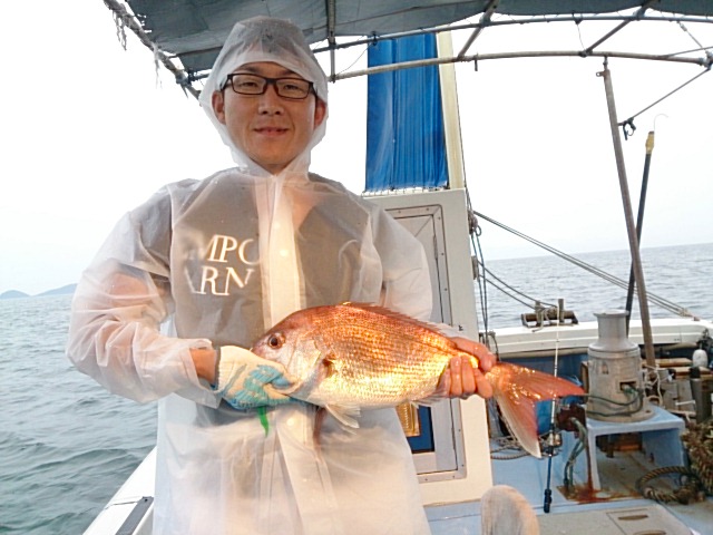 そんな中、沖出ていきなり、タイカブラでマダイ55センチ!釣れましたが、五目釣り昨日より食い渋く、数のびませんでした(T-T)