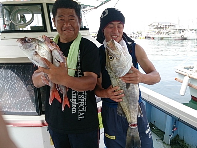 今日のお客さん、今日含めて三回連続タイカブラでマダイ釣られ喜んでました!