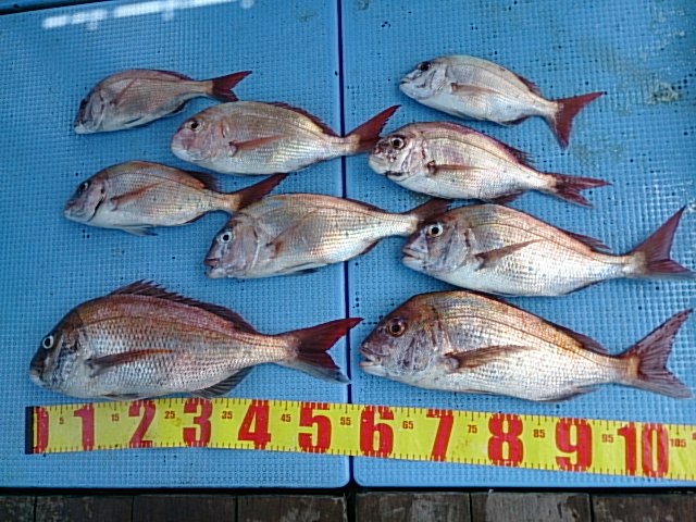 釣果 マダイ9匹(34センチ・35センチ・42センチ・42センチ・44センチ・47センチ・49センチ・56センチ・60センチ)[タイカブラ]