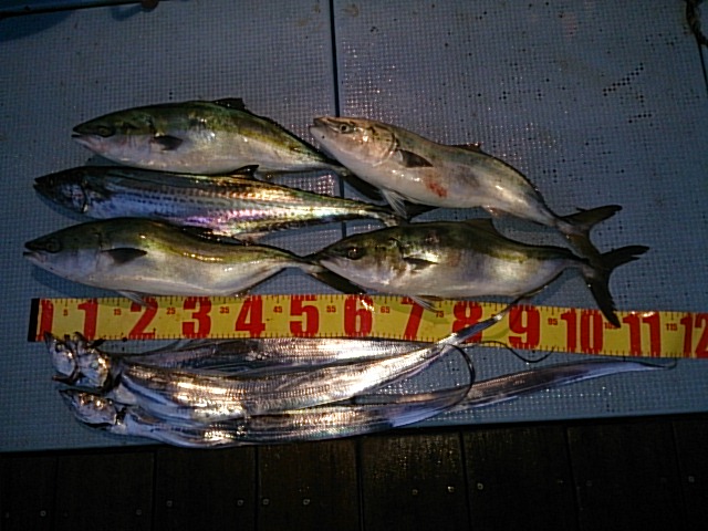 釣果 メジロ4匹(60センチ・62センチ・63センチ・66センチ)[ノマセ]/サワラ匹・81センチ[ノマセ]/タチウオ4匹(66センチ~103センチ)[タチウオテンヤ]