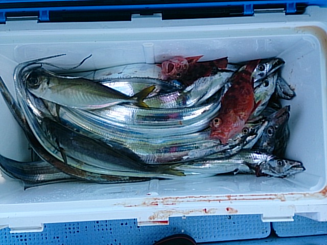 釣果 メジロ匹・センチ[ノマセ]/タチウオ19匹(72センチ~108センチ)[アンチョビミサイル・タチウオテンヤ]/マアジ2匹(30センチ・35センチ)/ガシラ2匹(15センチ・20センチ)