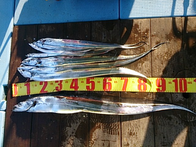 釣果 ハマチ1匹・57センチ/タチウオ9匹(60センチ~117センチ)[タチウオテンヤ]