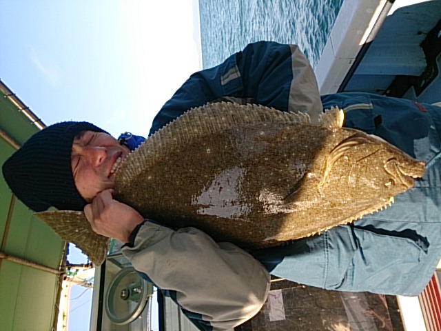 ノマセでヒラメ77センチ!釣れたので、良い土産できましした(^o^)v