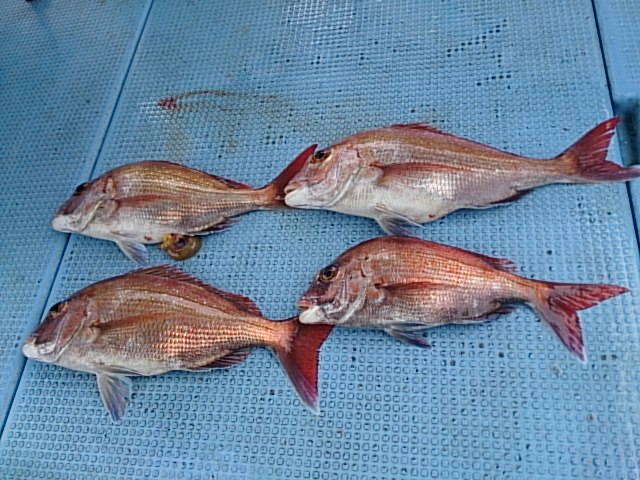 川合さん、マダイ37センチ頭に3匹内チャリコ2匹リリース