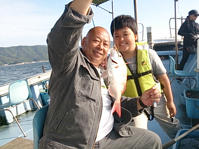 祐也君、友也君、二人とも自分で餌付け、アタリ取りあわせて上手に釣られましたね(^^)