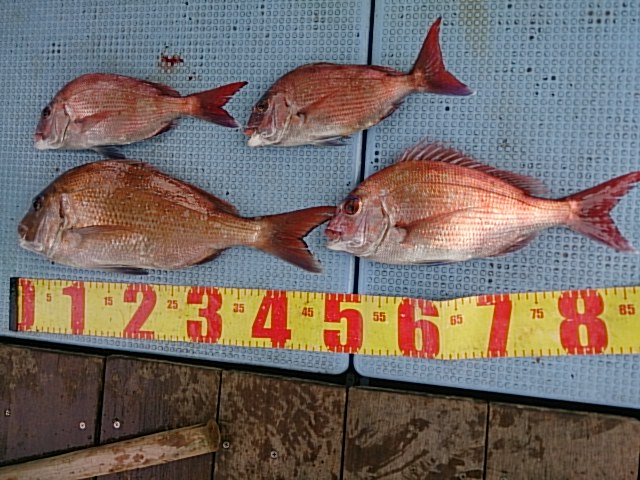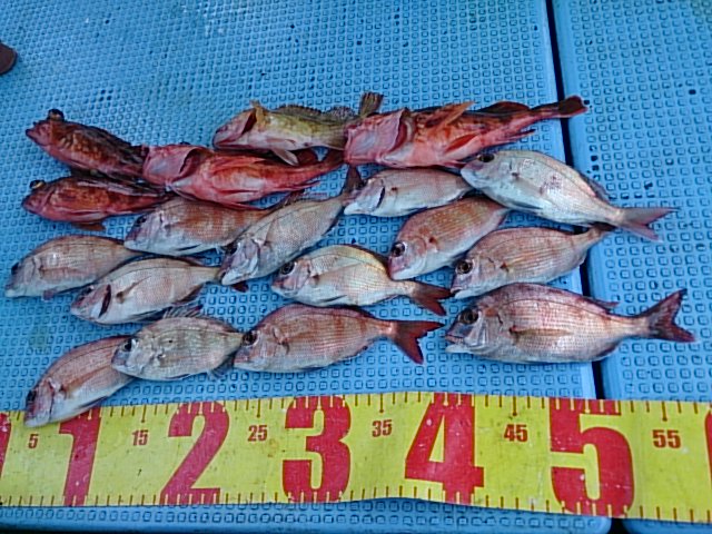 武田さん、マダイ33センチ[タイカブラ]/五目でガシラ、チャリコ釣れる 尚、五目釣りされた方、一人だけの釣果です。