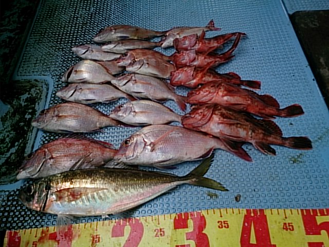 釣果 マアジ1匹・37センチ/チャリコ12匹/ガシラ5匹/カスゴ2匹