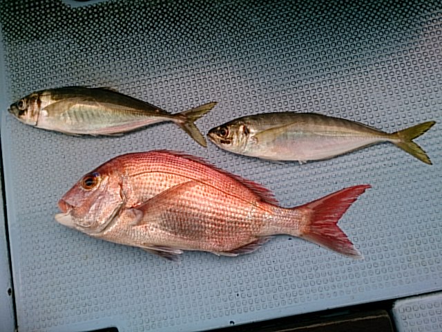 釣果 マダイ1匹・49センチ[タイカブラ]/マアジ匹・36センチ