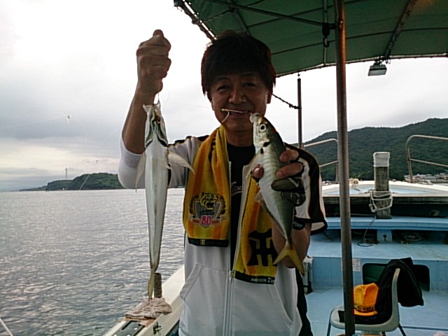 池田さん、久しぶり来て40センチ・42センチの良型のマアジ主体に釣れ、タチウオも釣れて良かったですね(^^)