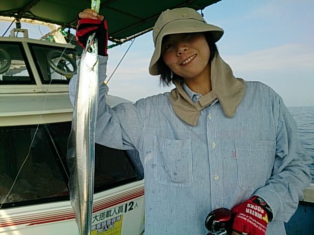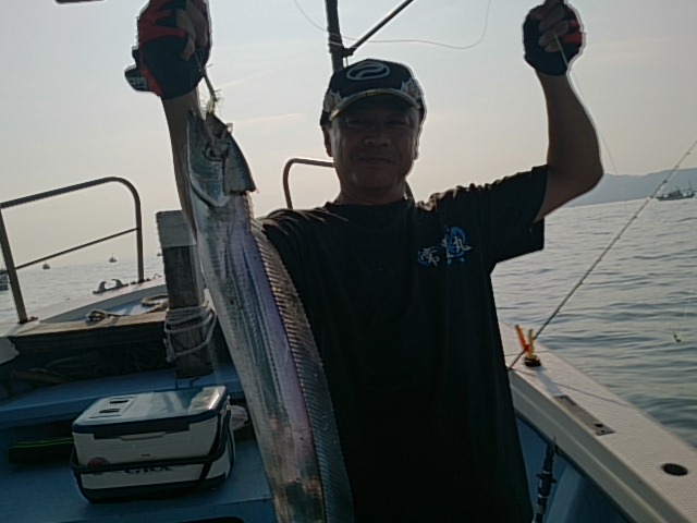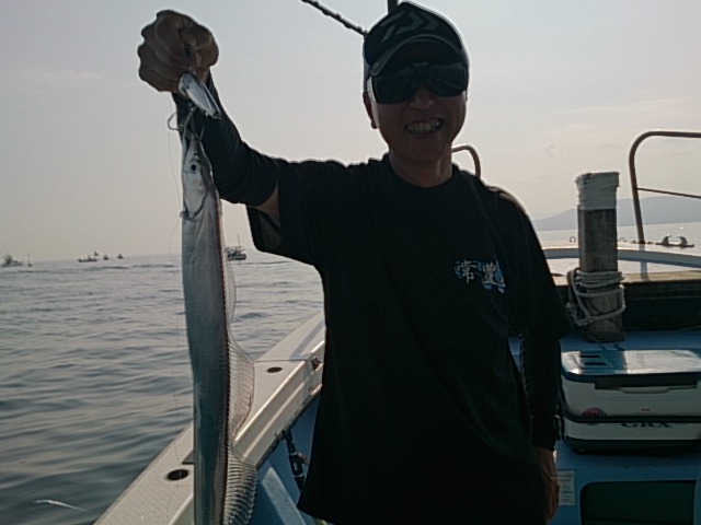 釣果 ハモ1匹・100センチ[胴付き仕掛け]/マアジ0~5匹・35センチ前後/タチウオ数えきれませんでした(^^)/[タチウオテンヤ]/ガンゾウビラメ/イシモチ/ガシラ/チャリコ混じる/魚は各自クーラー入れましたので、寸法数分かりません。