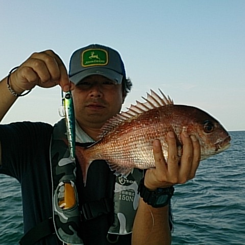 ウォーミングアップにタチウオして、後半大物狙いで、マダイの顔見れました(^_^)v