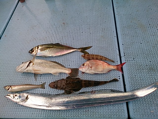 釣果 マアジ/タチウオ[タチウオテンヤ]/鰐鯒/イシモチ/チャリコ/トラキス