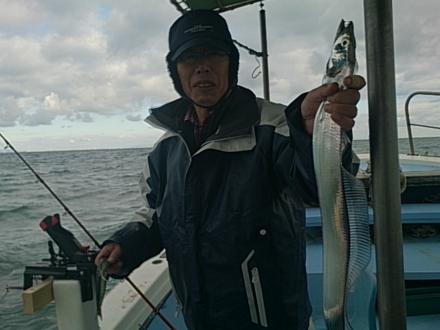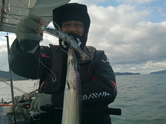初めてお越しの若原さん、大物釣り食い渋くタチウオだけですいません(T-T)