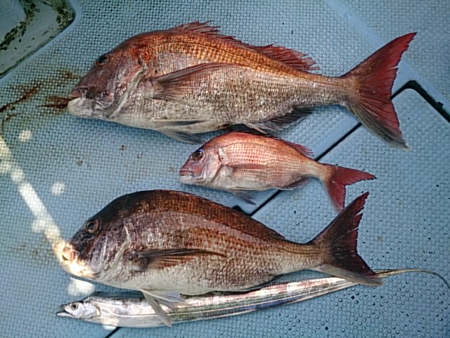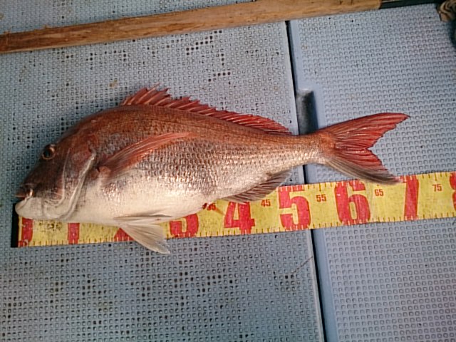 田中さん、前回船酔いして調子出ませんでしたが、今日は60センチと74センチの立派なマダイ釣れてリベンジ出来て良かったですね(^^)
