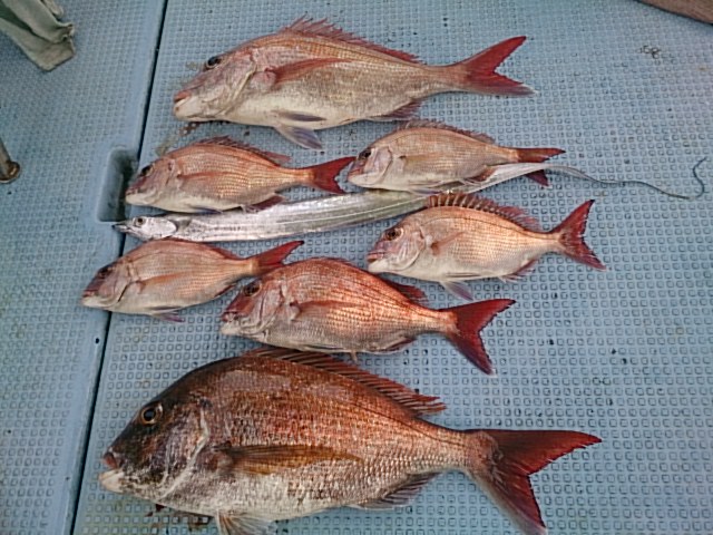 マダイ7匹(チャリコ・カスゴ・カスゴ・カスゴ・30センチ・47センチ・48センチ)[タイカブラ]