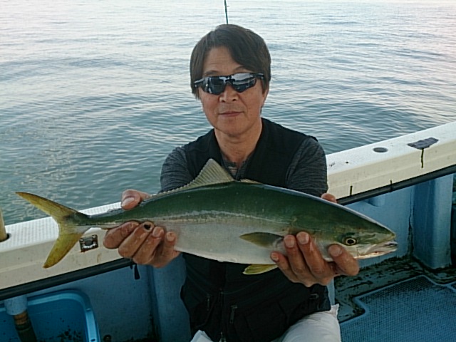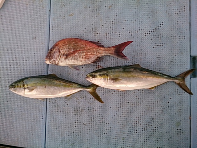 活性低い中、川神様の甥の坂田先生がマダイ釣られ、見本見せてくれてから、景気付いて、初めてお越しのお客さんにもハマチとメジロ釣れてくれて、良い土産になりました(^^)