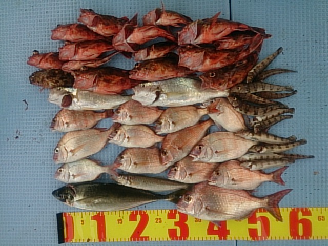 釣果 マアジ1匹・38?/ガシラ19匹(14?〜23?)/チャリコ13匹(18?〜22?)/キス1匹・23?/トラギス13匹(12?〜15?)/イシモチ2匹(25?・28?)/カスゴ1匹・29?