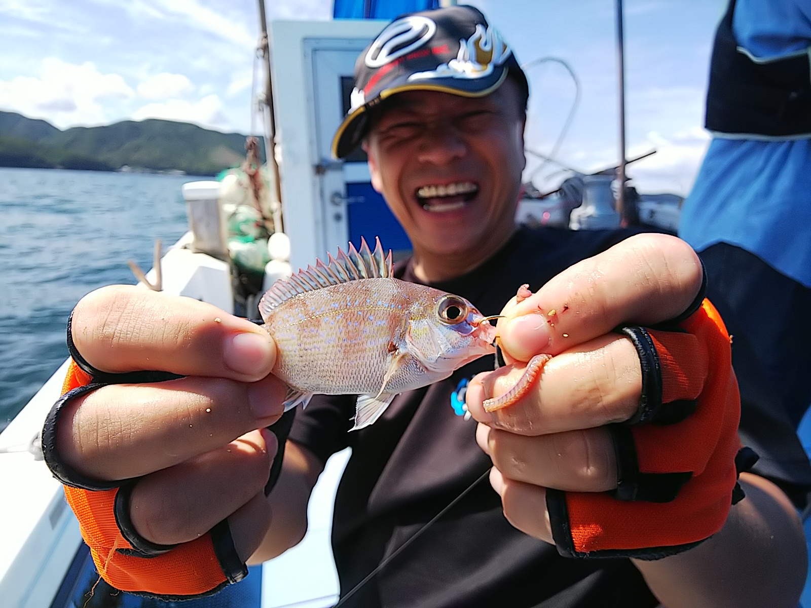 最後に、武田さんが五目仕掛けにツバスとメジロ釣られ本人は喜んでますが、武田さんが釣ると沖が荒れたり釣れなかったりして、ろくなことないので、昼からが不安です(笑)