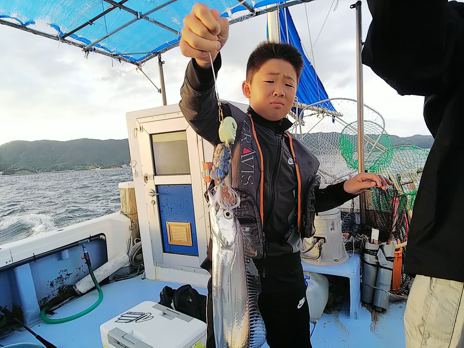 アカイカ3杯(胴長13センチ~胴長14センチ)[イカメタル]/タチウオ?匹(59センチ~98センチ)坊主なし 80センチ以下はリリース[タチウオテンヤ]/ヤナギ(サワラ赤ちゃん)1匹・44センチ/ガシラ1匹