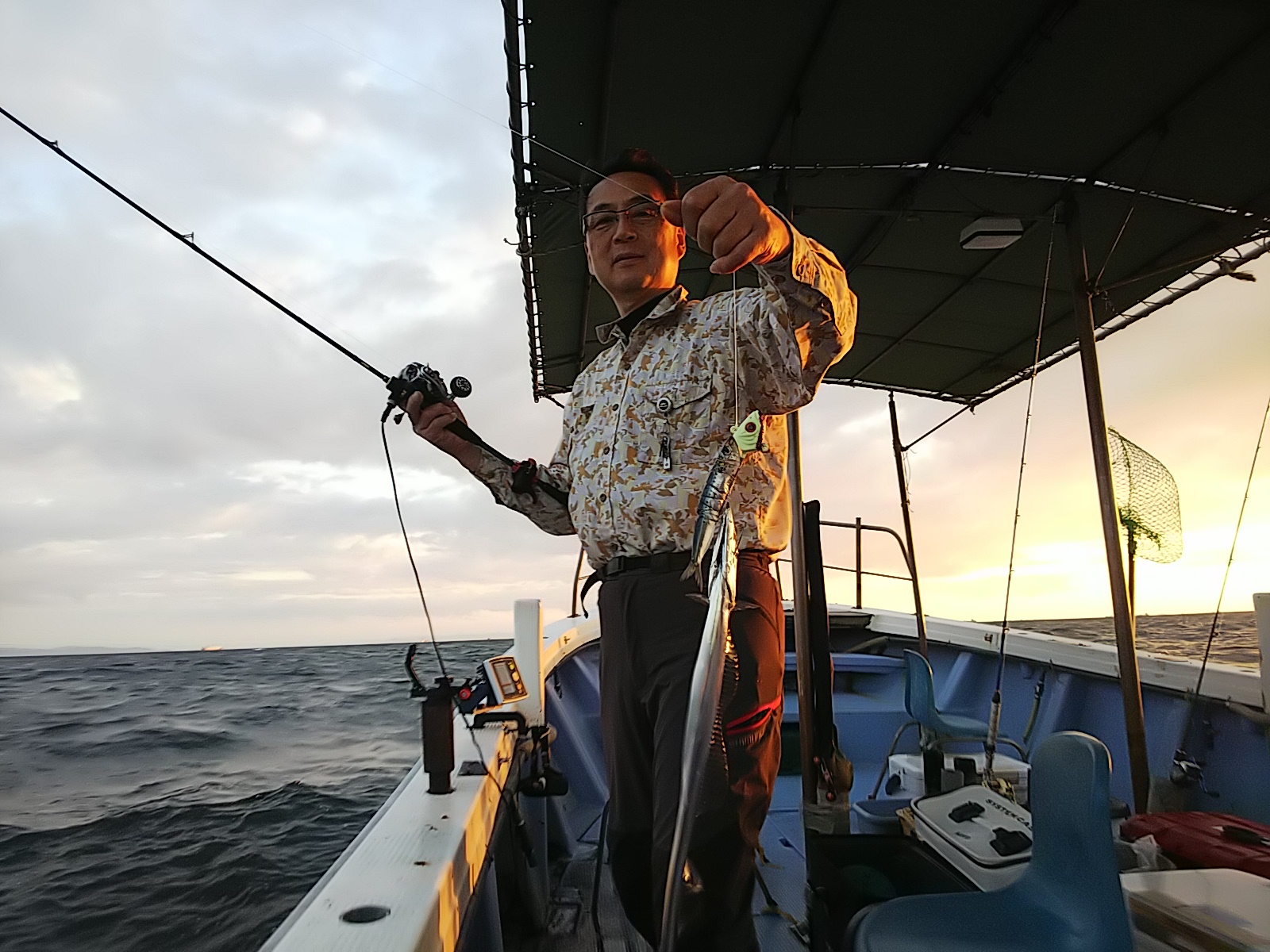 そんな中、全員タチウオ釣れてオカズ確保してから、当船ではしたことないイカメタルでアカイカの試し釣りを1時間してアタリもそこそこあり、釣れたのは3杯だけですが結果出て良かったです(^^)